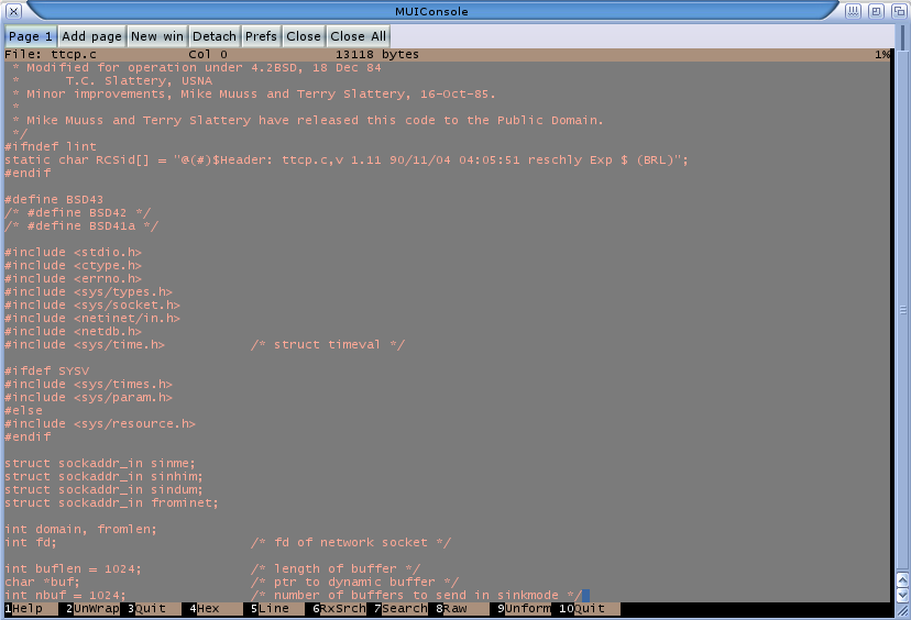 Midnight Commander's file display window, logged in via OpenSSH's ssh command to a Debian box |