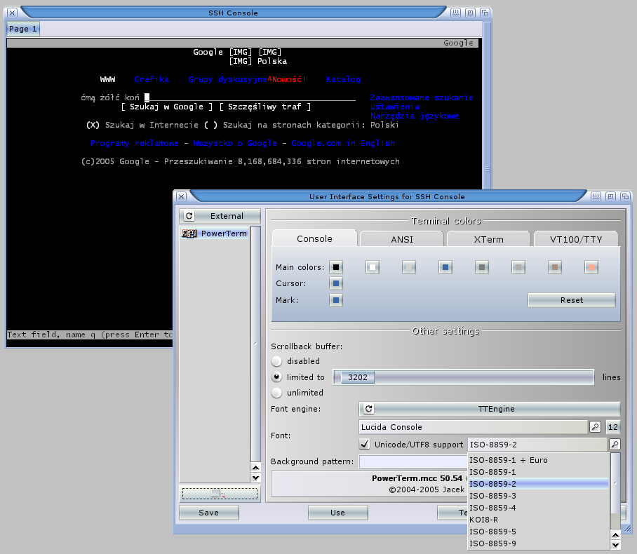 PowerTerm's UTF input/output support in action!