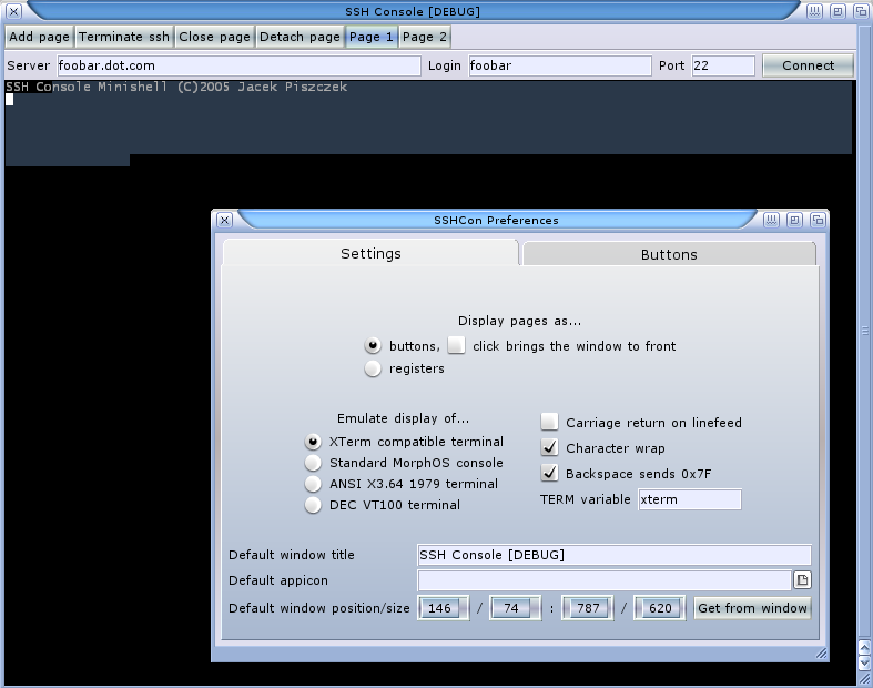 Typical SSHCON window with preferences.